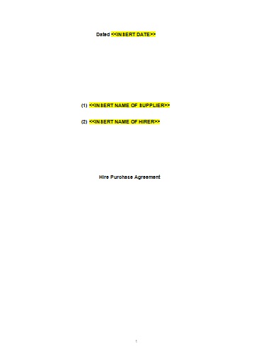 Please note: This Hire Purchase Agreement shall be used where both the supplier and the hirer are incorporated businesses (i.e. one company hires equipment, which it owns, to another company). Do not use this template where the hirer is a sole trader or another unincorporated body as certain hire purchase agreements are regulated under the consumer credit regime; and this agreement assumes that it is exempt from regulation under the consumer credit regime.