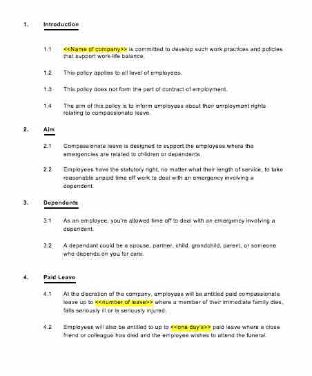 This policy also informs the employees of their employment rights relating to compassionate leave.