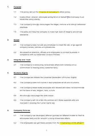The Ethics Policy will provide your business with strong ethical standards and a high level of integrity; overall, this policy will aid in establishing and building your business's reputation.