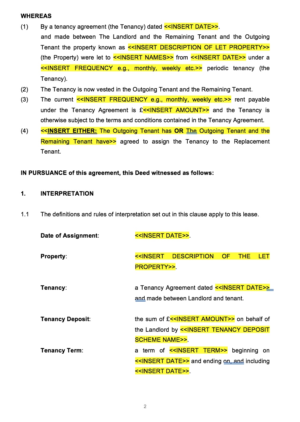 There are several scenarios where an Assignment of Tenancy may be appropriate, for example, where a tenant must move out before the end of the tenancy they can assign their tenancy to someone else, ensuring it continues without disruption. Also, in a shared tenancy, one tenant may wish to leave while the others prefer to remain. An assignment allows the departing tenant to transfer their interest in the property to a new tenant.